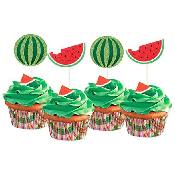 24pcs Glitter Watermelon Cupcake Toppers Fruits Theme Party Dessert Cupcake Picks For Summer Birthday Baby Shower One In A Melon First Birthday Tropical Party Decoration Supplies Walmart Com